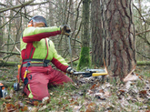 Bei der Holzernte ist das Fällen der Bäume in die gewünschte Richtung oftmals mit einem entsprechenden Keilaufwand verbunden. In der anstrengenden Waldarbeit werden die größten Belastungen beim Arbeitstakt Keilen erreicht. Die Verwendung eines Spreizkeiles bietet eine vielversprechende Alternative zum kraftaufwendigen Keilen mit der Axt.